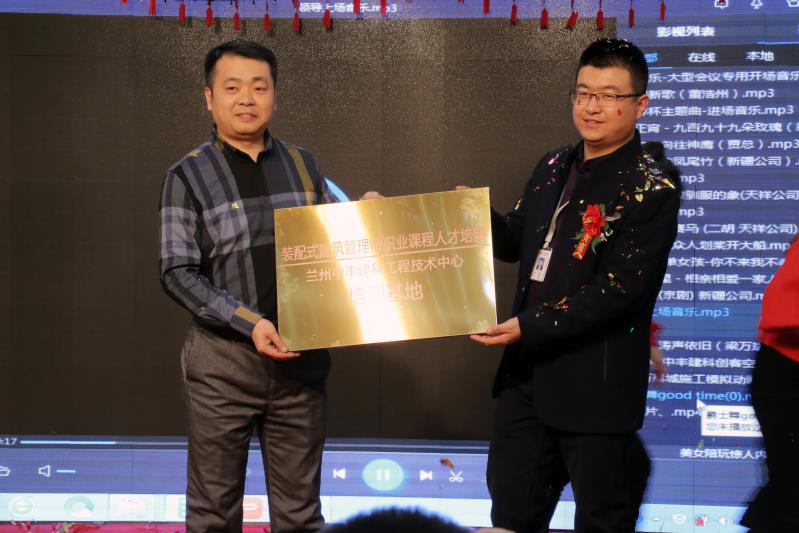 最后秦主任向中豐建科甘肅集團(tuán)授予“裝配式建筑管理師職業(yè)課程人才培養(yǎng)蘭州中豐建科工程技術(shù)中心培訓(xùn)基地”牌匾。