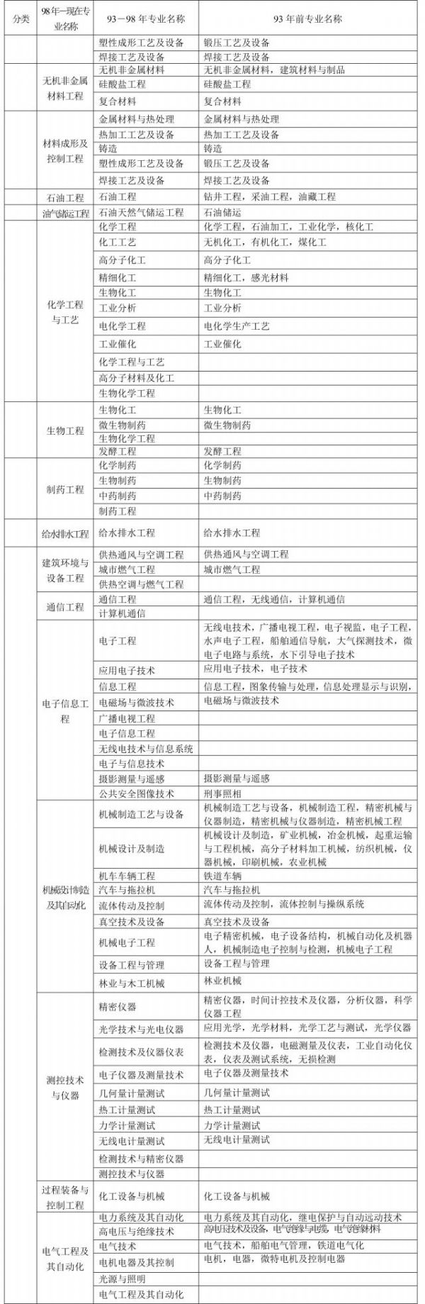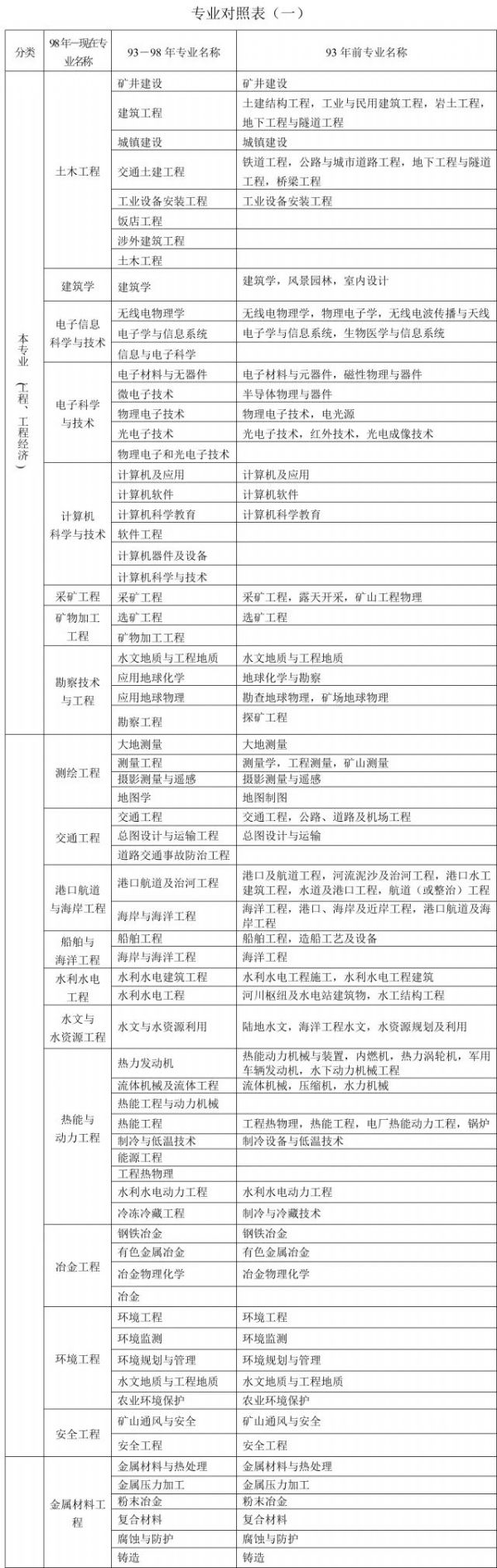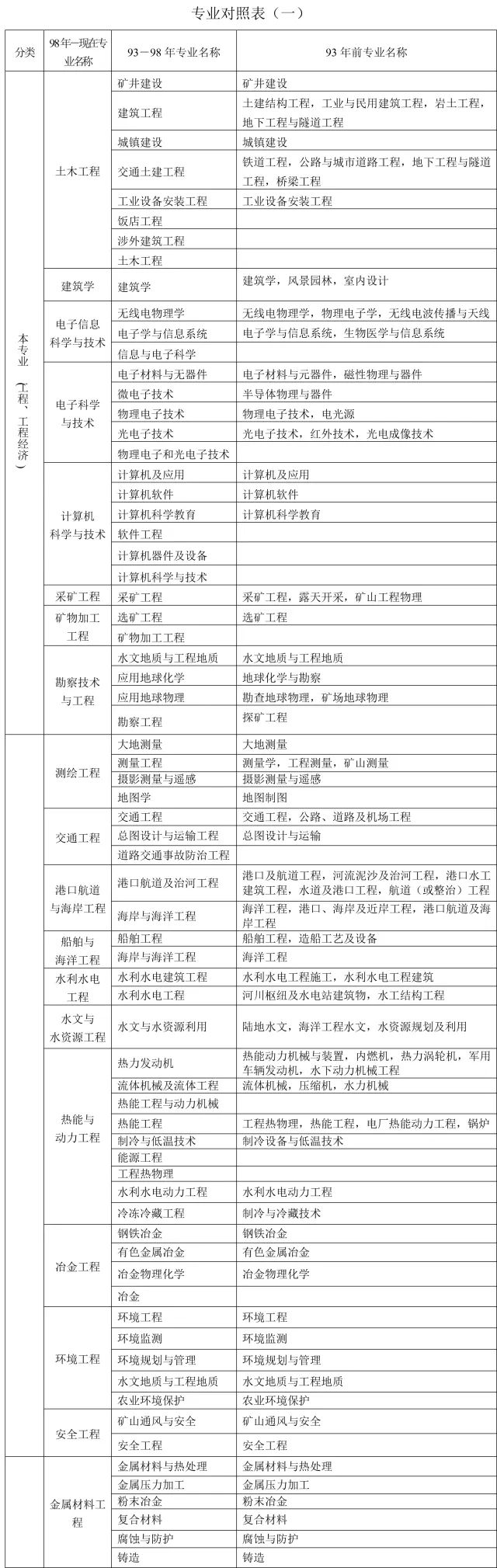 1、本表按教育部現(xiàn)行《普通高等學校本科專業(yè)目錄新舊專業(yè)對照表》編制,共涉及“土建類、測繪類、水利類、交通運輸類、能源動力類、地礦類、材料類、電氣信息類、機械類、管理科學與工程類、生物工程類、化工與制藥類、工程力學類”等18類45個專業(yè),其中本專業(yè)36個,相近專業(yè)9個。