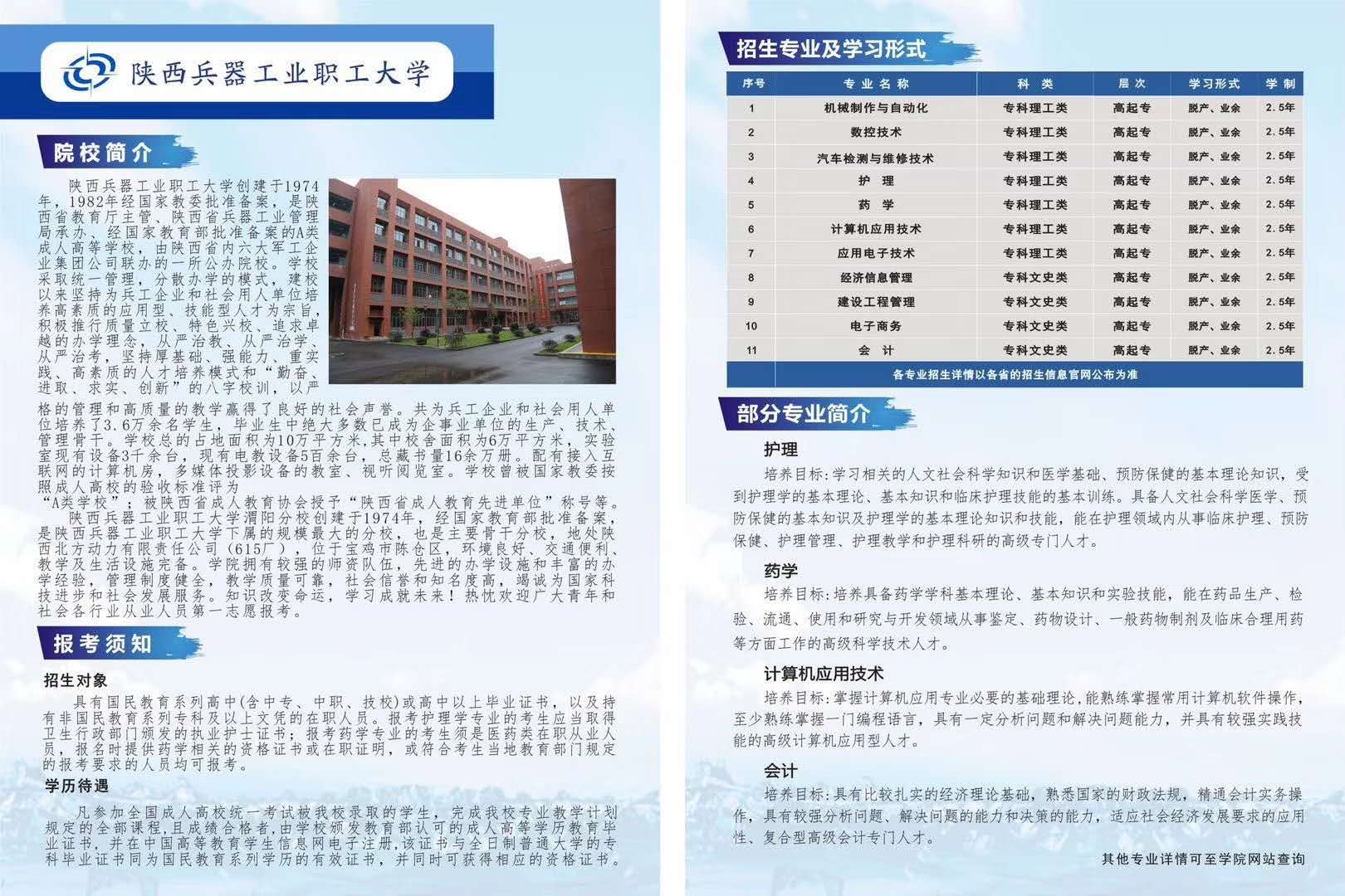 陜西兵器工業(yè)職工大學(xué)招生簡章
