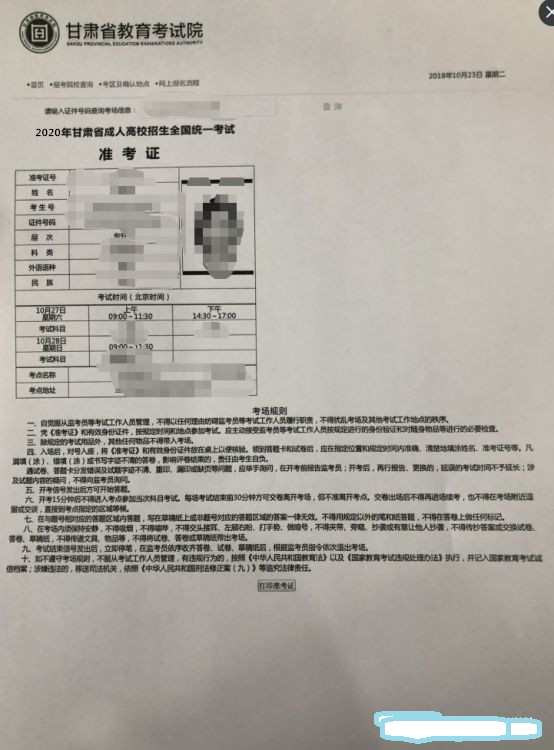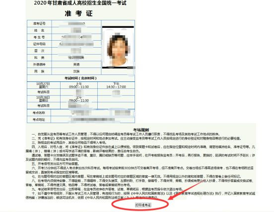 各位同學(xué),成考準(zhǔn)考證于明日(2020年10月21日)開(kāi)始打印,溫馨提示: