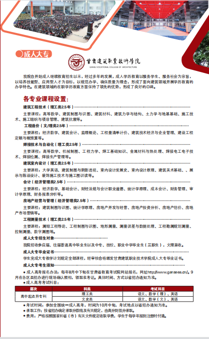 甘肅建筑職業(yè)技術(shù)學(xué)院成人高等教育2021年招生簡(jiǎn)章