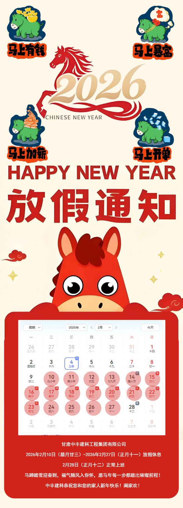關于2026年中豐建科(甘肅)集團春節(jié)放假的通知