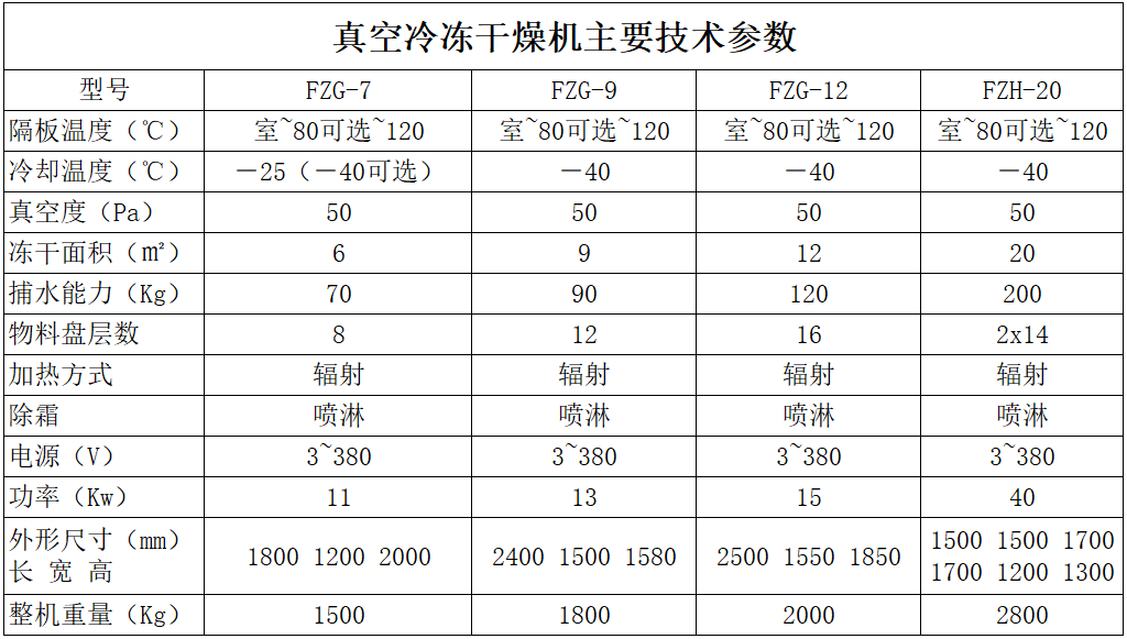 五、真空冷凍干燥機(jī)主要技術(shù)參數(shù)